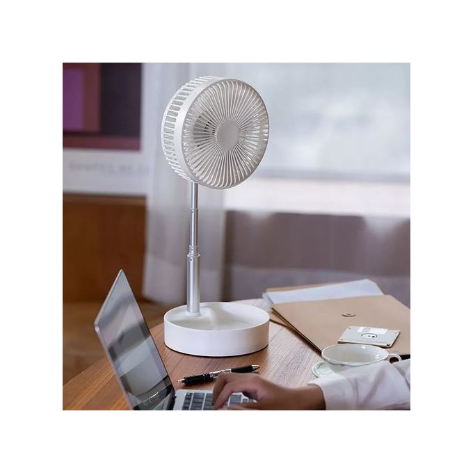 White Ventilateur télescopique pliable, rechargeable USB, réglable à 3 vitesses